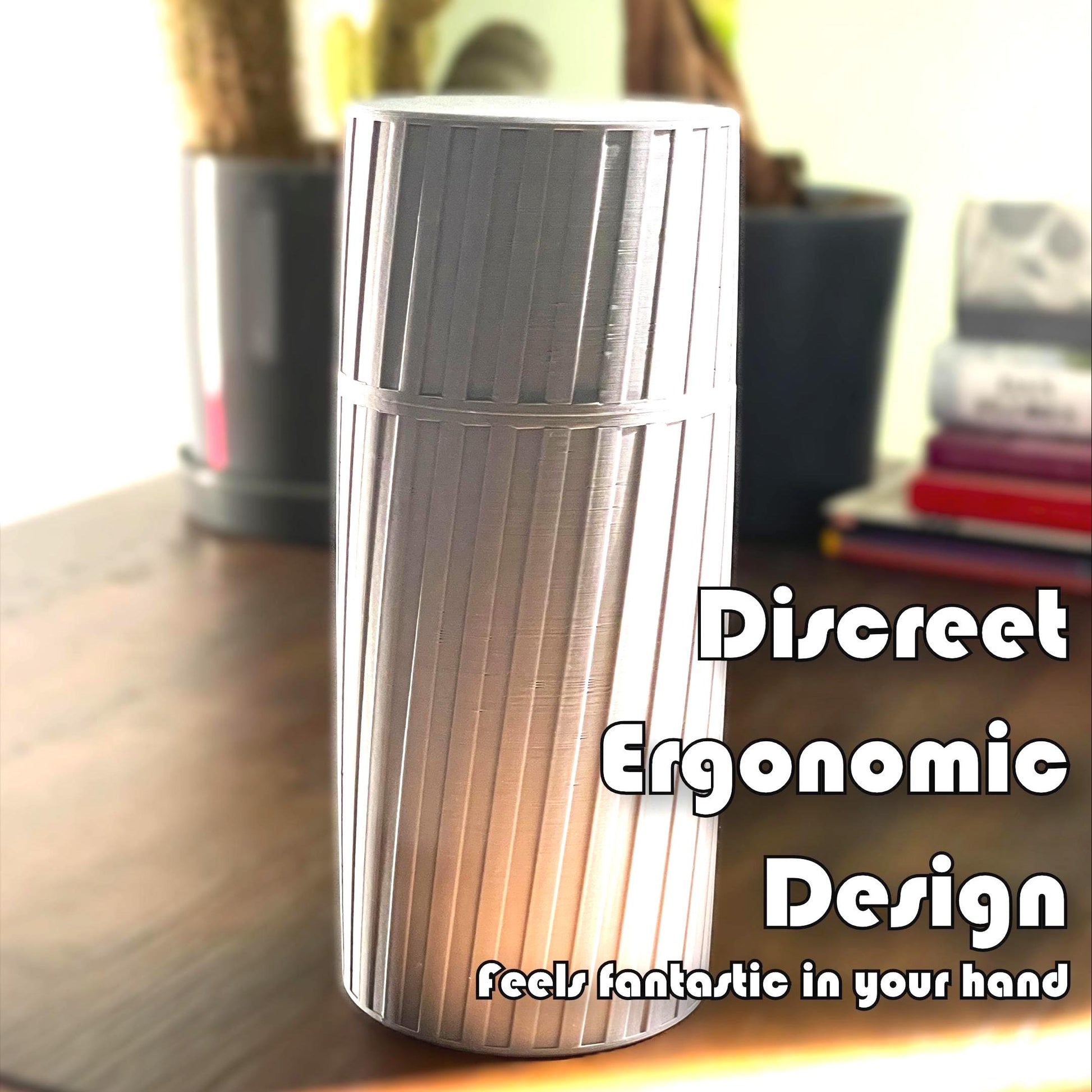 Curved exterior with contoured grooves for a comfortable grip